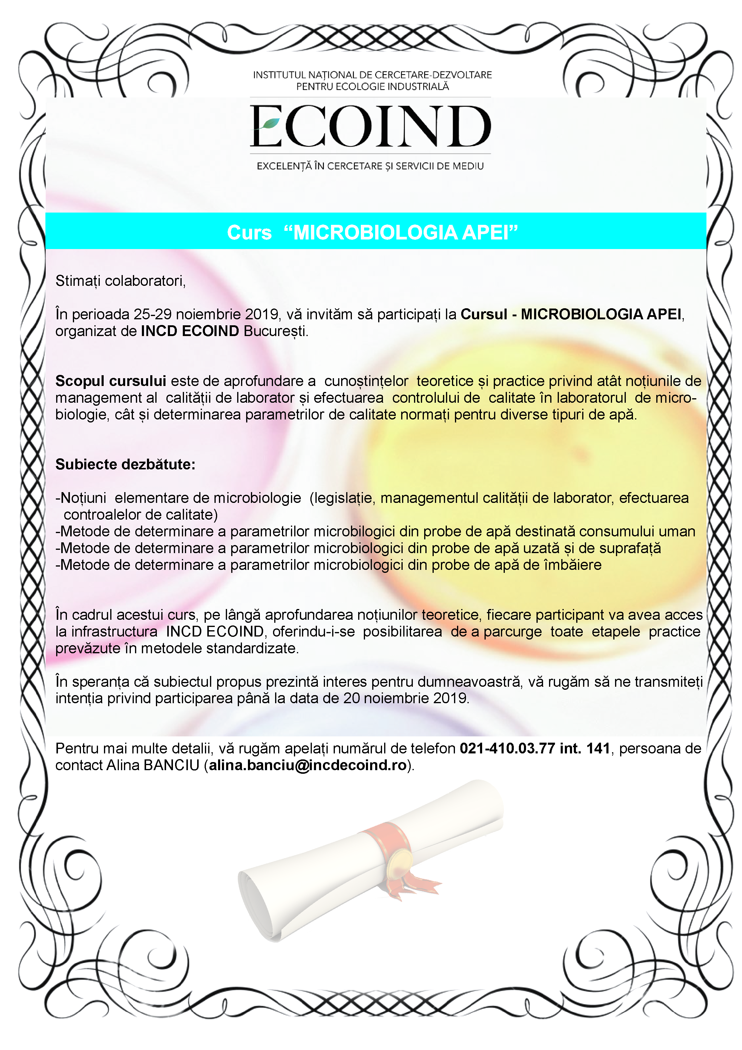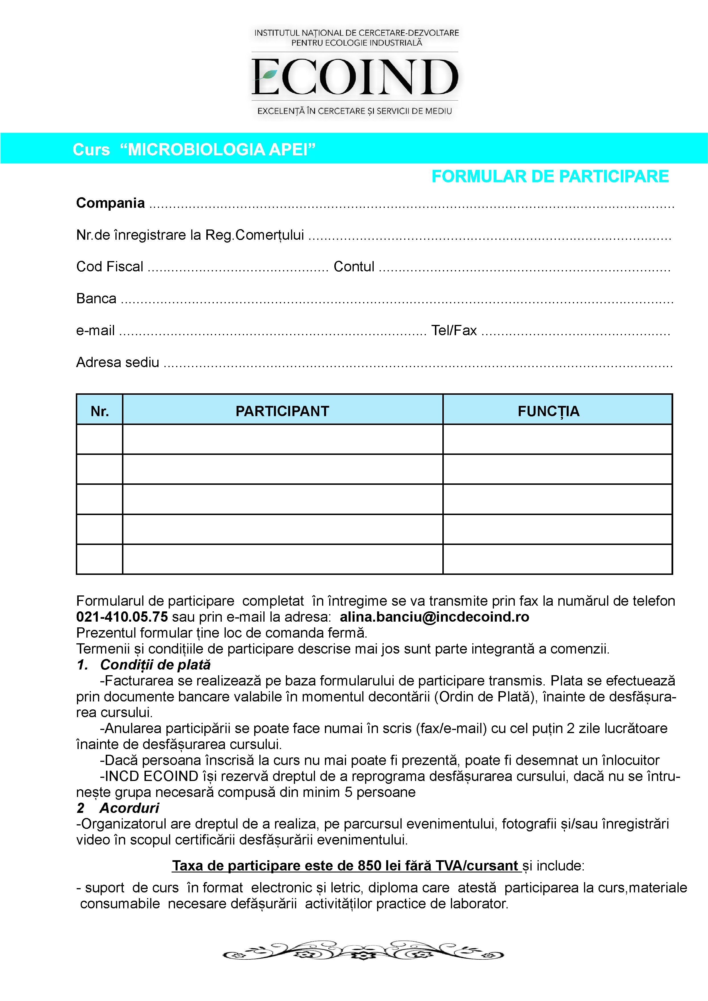 Formular participare Curs- Microbiologia Apei